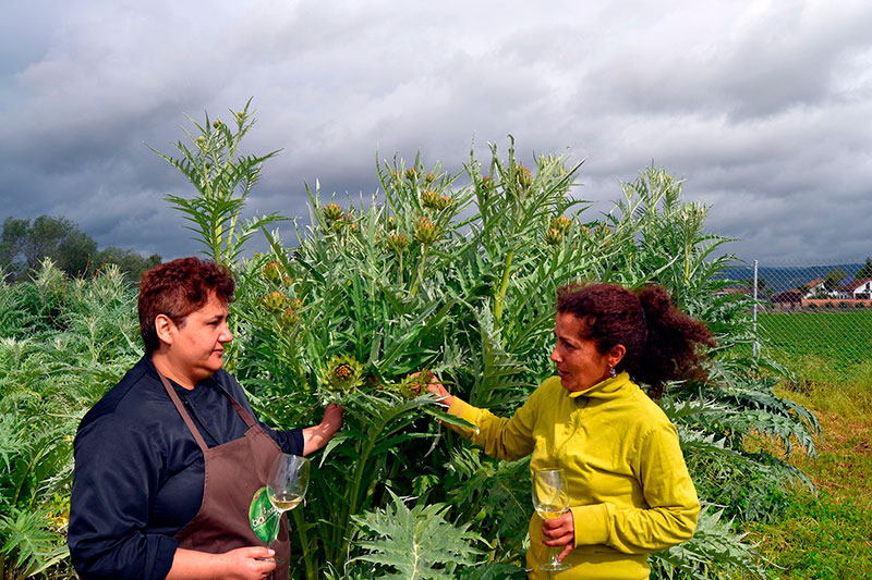 La chef Miriam Cózar (Biodiverxa) y Juan Bolaños, de Bodegas Robles, han visitado durante el tercer fin de semana de abril, los huertos que integran El Ecomercado.